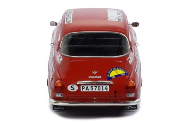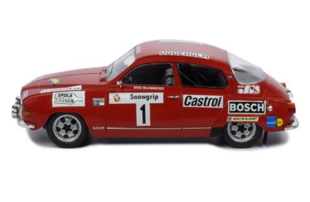 Mooie Saab 96 V4 Rally uit 1973 in de kleur rood. Deze is van het merk IXO Models en heeft startnummer 1. Blomquist en.Hertz wonnen er in 1973 The Swedish Rally mee. Deze Saab heeft een schaal van 1:18. Nieuw in originele verpakking.