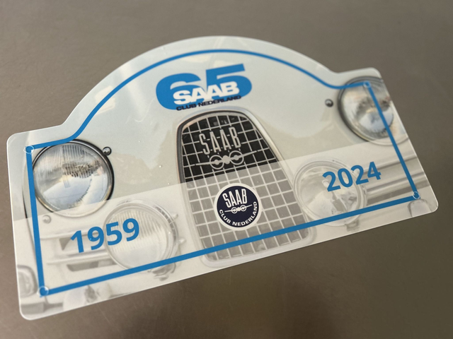 Voor wie het Saab Club 65 Jubileum Event in Baarn heeft gemist: het officiële Saab Club 65 Rallyschild! Zo hou je je verzameling Saab-goodies toch compleet!