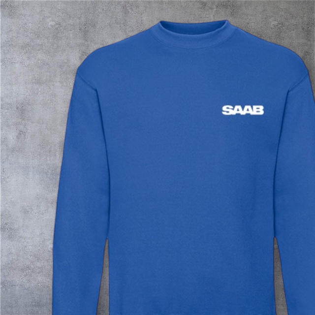 Classic sweater met ronde hals en lange mouwen in de kleur royal blue van het merk Fruit of the Loom. De sweater is op de linkerborst geborduurd met het Saab woordmerk in wit. De polo is van 80% katoen/20% polyester. Verkrijgbaar in diverse maten (S t/m XXL) en in de kleur dark navy.